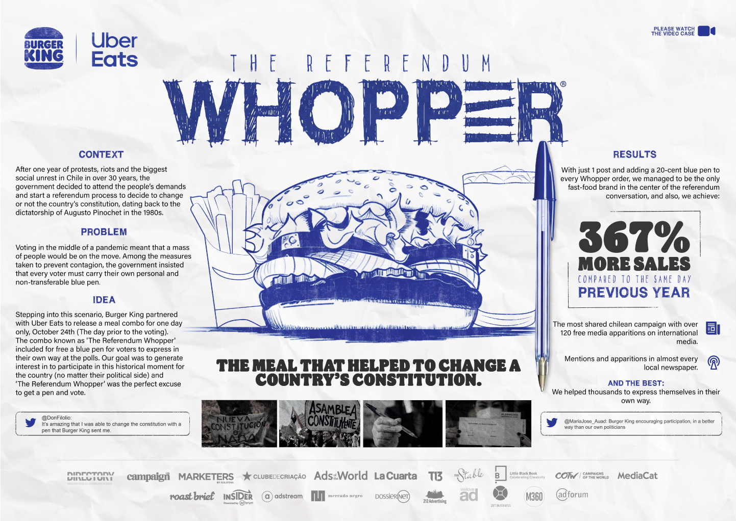 Burger King decided to partner with Uber Eats to create and launch a meal combo that existed only on the day before the plebiscite to decide whether the country would change its constitution.